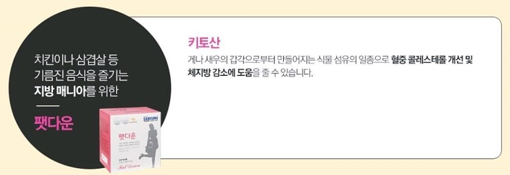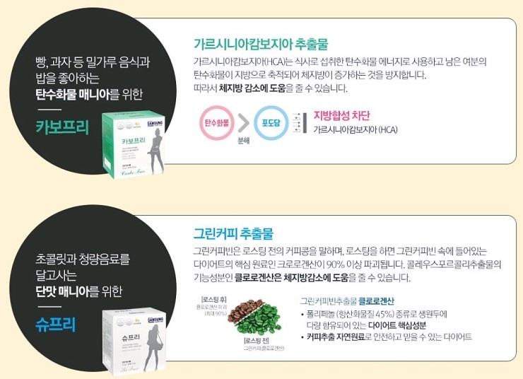 키토산, HCA(가르시니아), 그린커피 등의 성분이